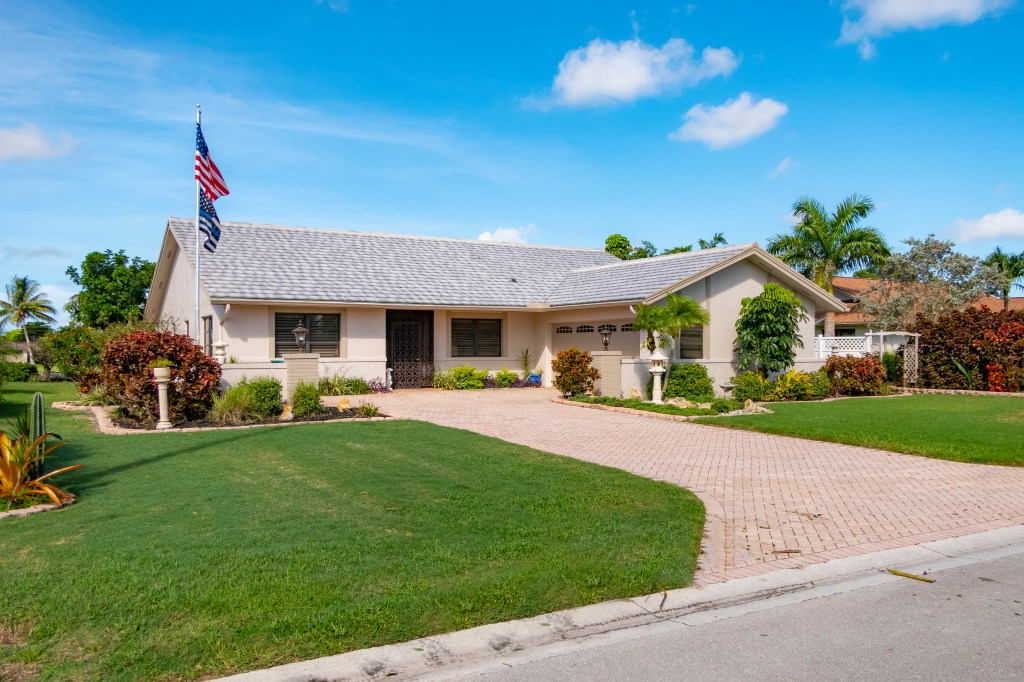 | Situated on a golf course with soothing lake views, this home is located in a quiet neighborhood a few blocks from the Royal Palm Club and a short drive to Naples beaches and the dining/shopping district. Upon entering, you are greeted by vaulted ceilings and wood beams in the living room. There’s a nicely appointed kitchen with granite countertops and pantry near a formal dining area. This four bedroom plus den, two bath house has plantation shutters and is perfect for a family or retired couple who desires something larger than a condo. There’s a summer kitchen and oversized screened lanai overlooking the golf course and large backyard. There’s plenty of room for a pool, and you cannot beat the low HOAs. Don’t miss this property, which is impeccably maintained with new outdoor paint and a newer tile roof. | ||||||